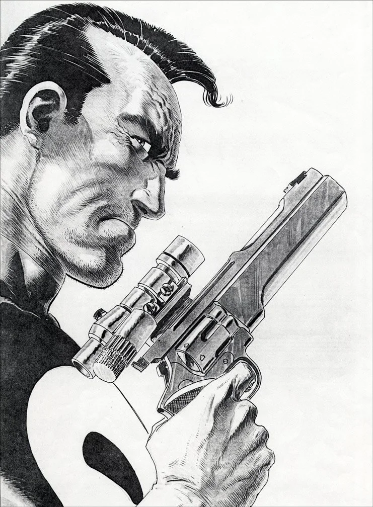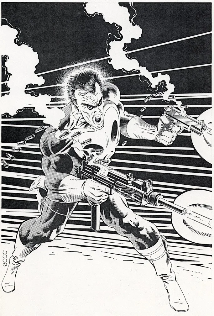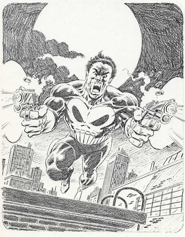 THE PUNISHER unpublished art - Possibly an idea for a wraparound cover, and likely drawn before the Limited Series? Mike Zeck (pencils) John Beatty (inks)
