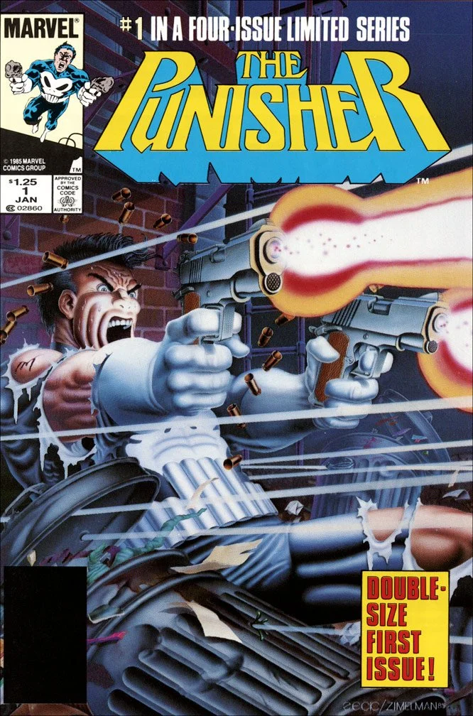 THE PUNISHER LIMITED SERIES Vol 1 #1, January 1986 issue - INTERIOR: Mike Zeck (pencils) John Beatty (inks) COVER: Mike Zeck (pencil art) Phil Zimelman (airbrush painting)