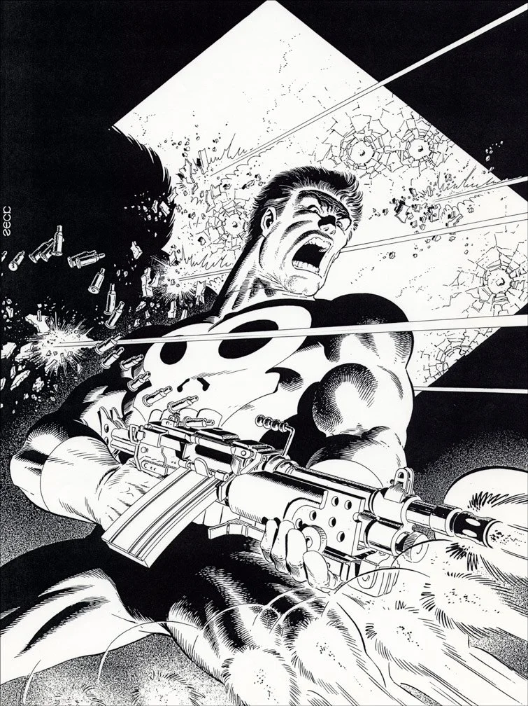 PUNISHER POSTER - My final Punisher on-sale poster was a rare non-painted version. Mike Zeck (pencils) John Beatty (inks)