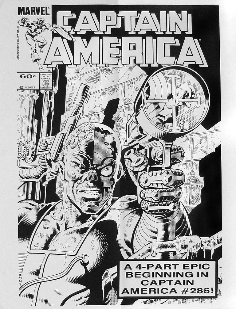 CAPTAIN AMERICA IN-STORE PROMO POSTER - After editor Mark Gruenwald saw the Captain America 286 cover art, he used it as a black and white retail market promo poster.
