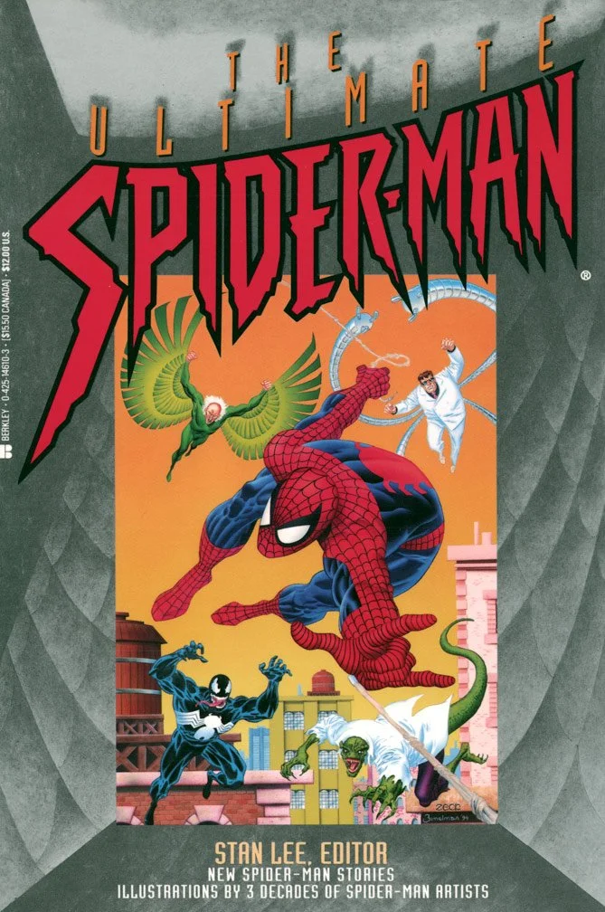 THE ULTIMATE SPIDER-MAN, 1994 - Oversized paperback collection of Spider-Man text stories. COVER: Mike Zeck (pencils) Phil Zimelman (airbrush painting)