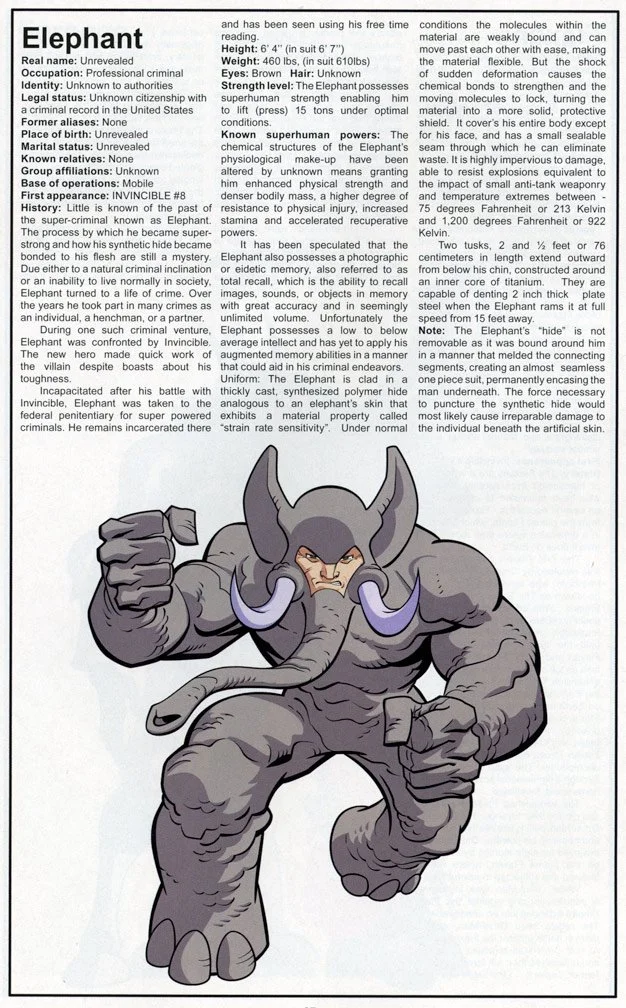 OFFICIAL HANDBOOK OF THE INVINCIBLE UNIVERSE #1 of 2, November 2006 - INTERIOR: Elephant character art. Mike Zeck (pencils, inks)